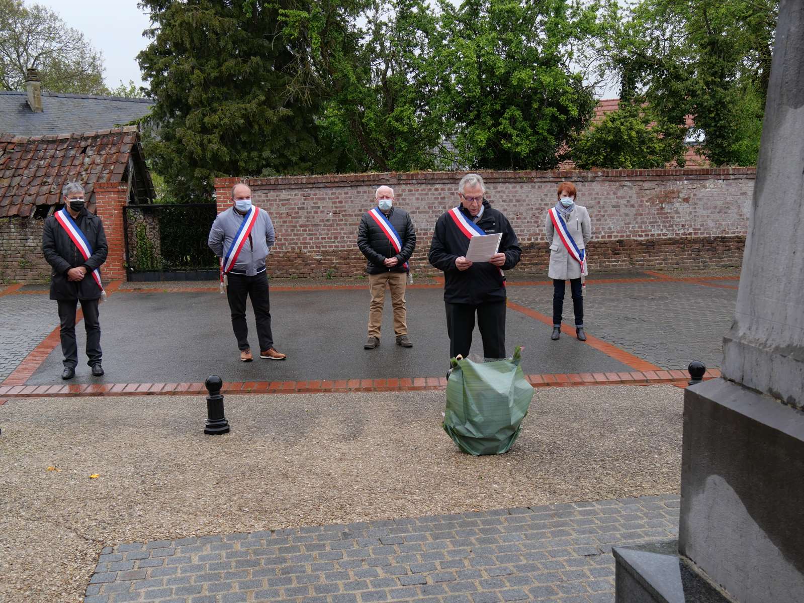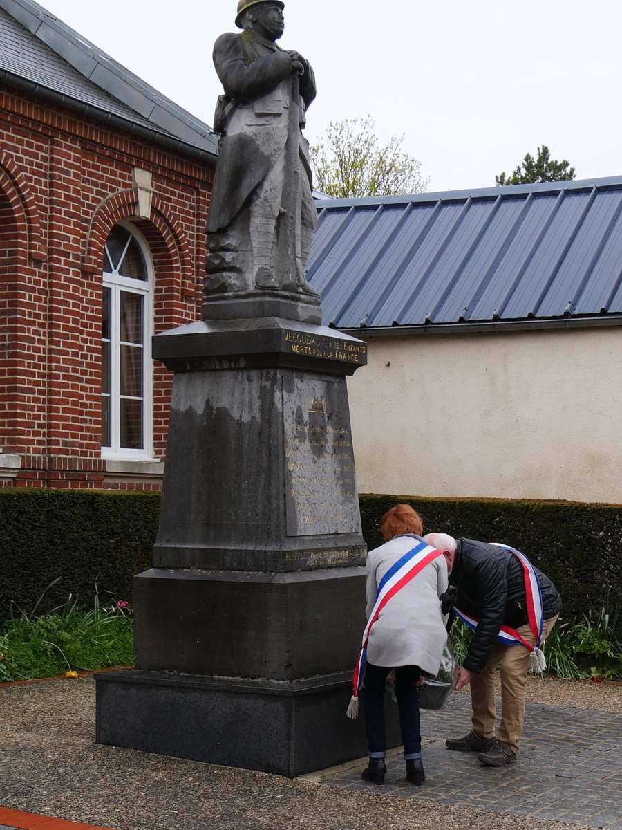 Une gerbe a été déposée devant le monument et Monsieur le Maire a donné lecture du message de la ministre déléguée auprès du ministre des Armées, chargée de la mémoire et des anciens combattants, Geneviève DARIEUSSECQ.