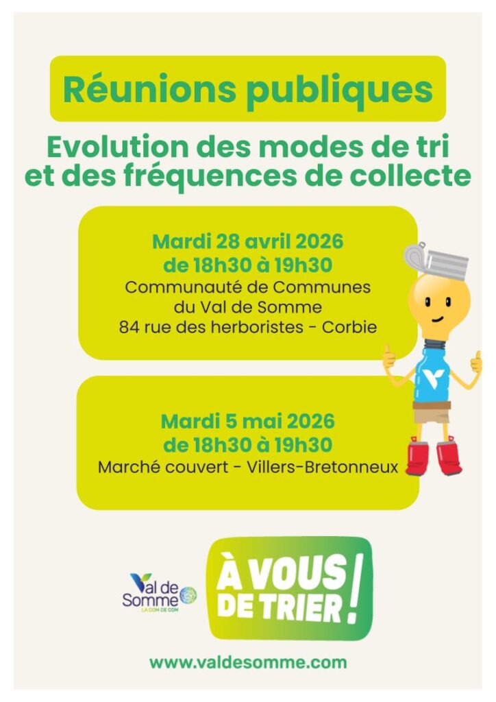 Dans le cadre de l’évolution des modalités de collecte des déchets sur le territoire, les habitants du Val de Somme sont invités à deux réunions publiques d’information :